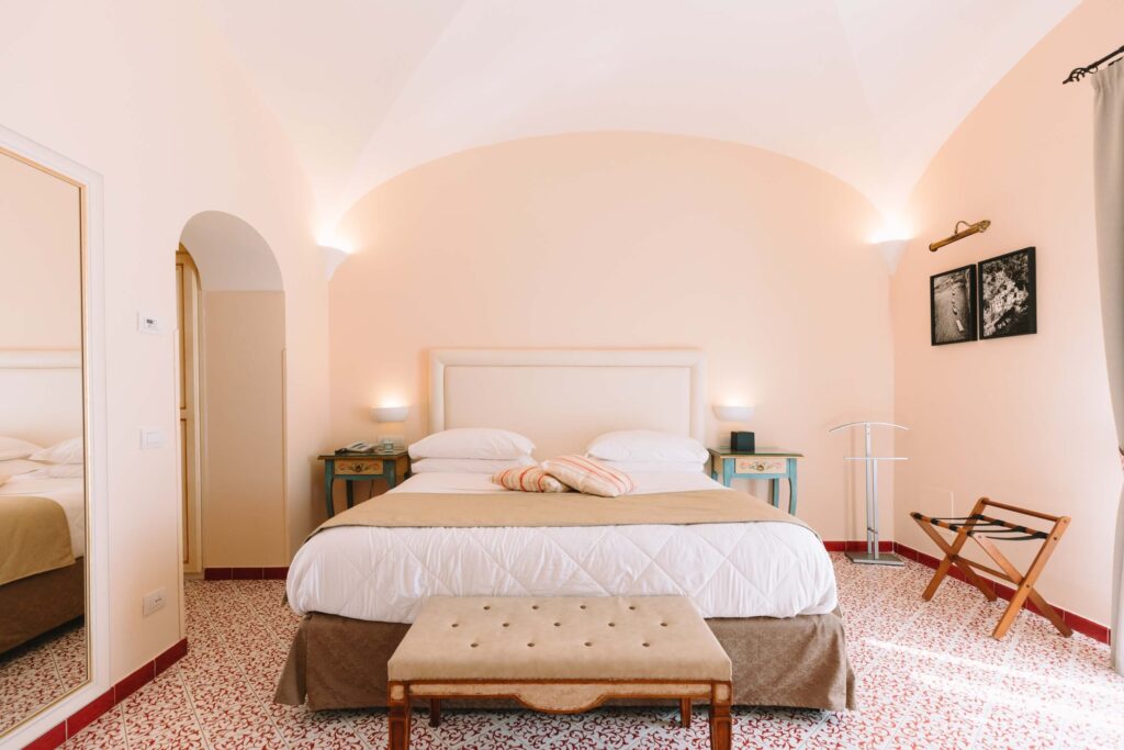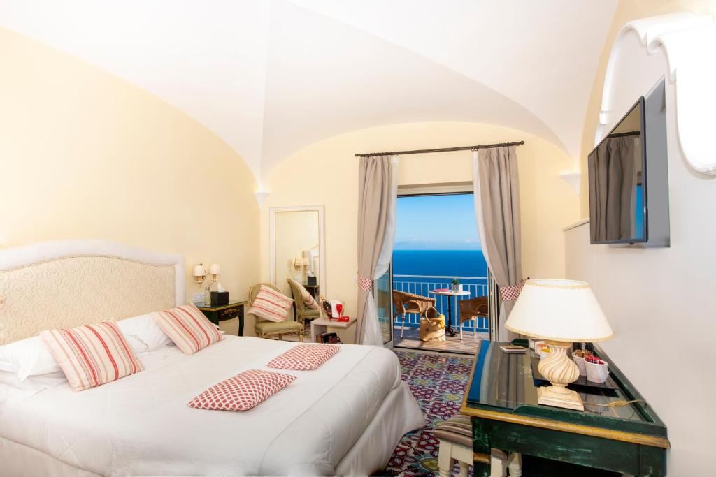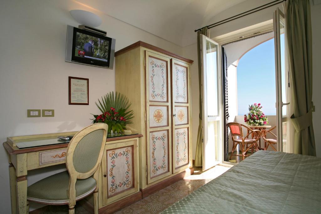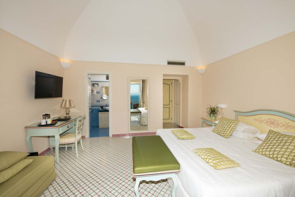 Large bed, bright, furnished in typical Mediterranean hues with colorful tiles. Private balcony overlooking the sea. Air conditioning, Wi-Fi, satellite tv, mini-bar, kettle with complimentary set, balconies soundproofed, and private en-suite bathroom.