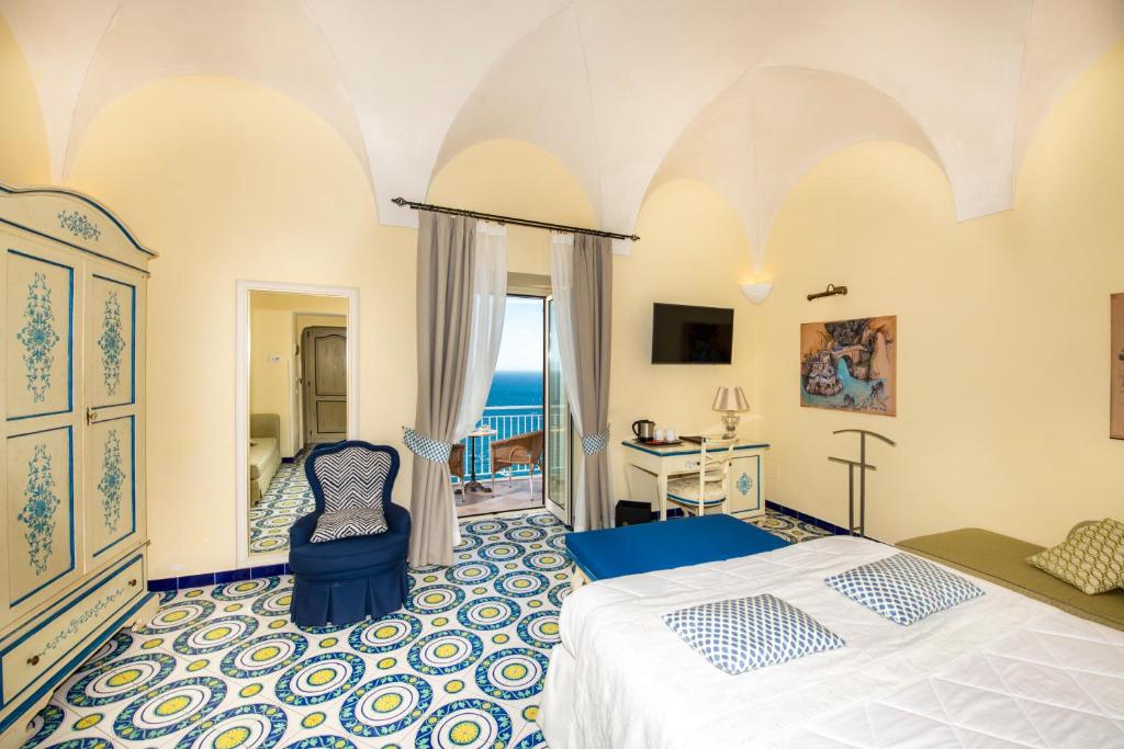 Superior Room Large bed, bright, furnished in typical Mediterranean hues with colorful tiles. Private balcony overlooking the sea. Air conditioning,...